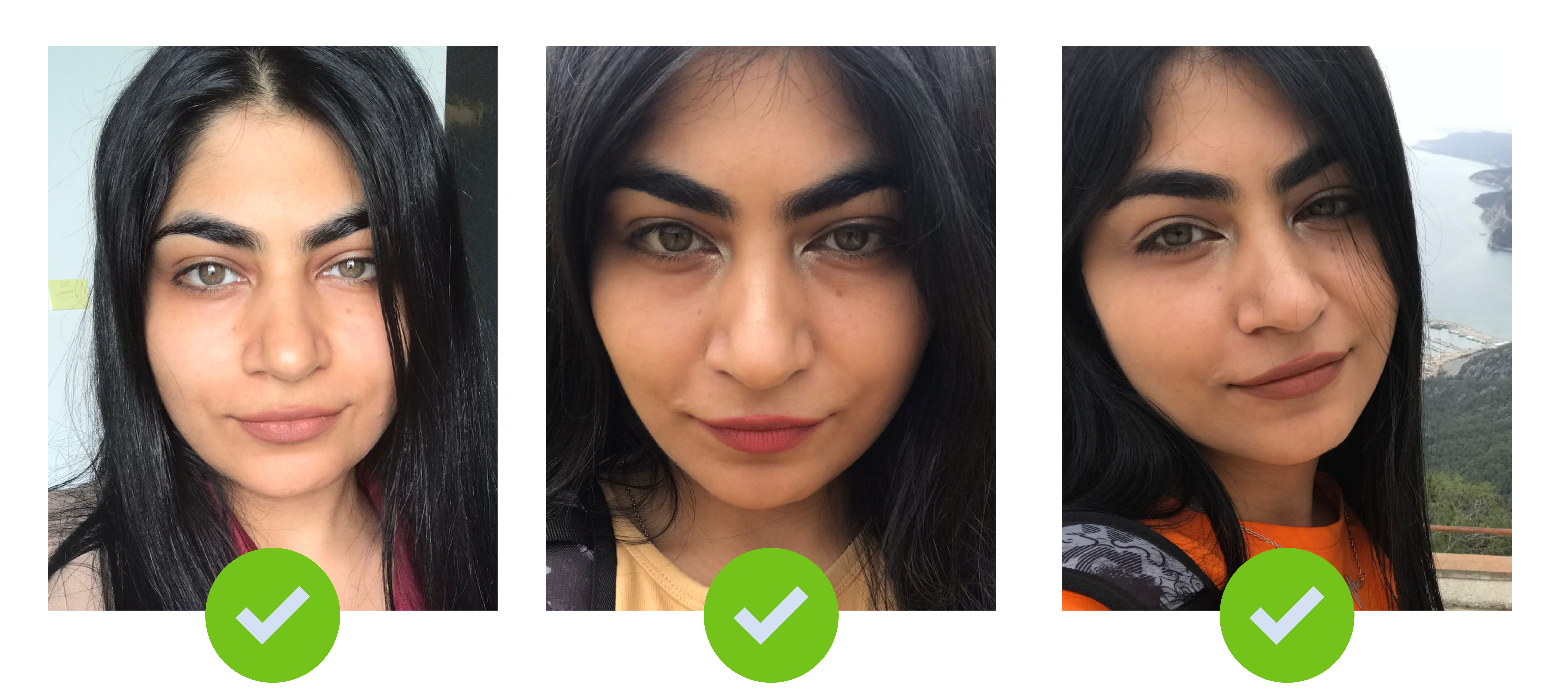* Distance from the face should allow capturing the image that complies with Face Requirements. Please make sure that inter-pupillary distance, face size and recommended proportion of face on the image are preserved.